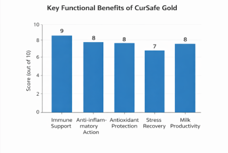 Curcupro Gold should be administered daily as a nutritional supplement to support immunity, inflammation control, and overall performance in dairy animals. The product can be easily incorporated into regular feeding practices without affecting milk safety.